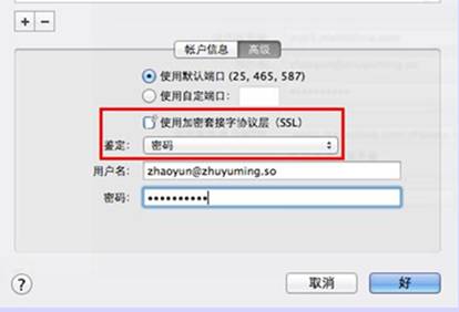 第九步:在【鑒定】屬性中選擇【密碼】,點擊【好】,郵箱設置完畢。